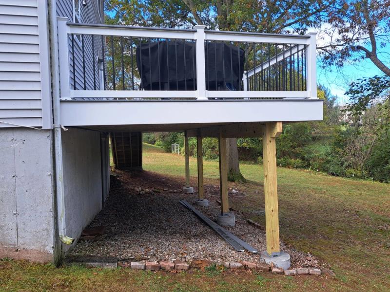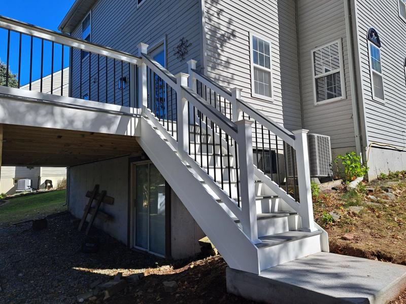 We removed the aging wood deck and built a brand-new outdoor living space using durable, low-maintenance composite decking. The updated design features modern railings, fresh stair construction, and a clean look that complements the home beautifully. This upgrade not only enhances curb appeal but also provides a safe, long-lasting space for entertaining and enjoying the outdoors.